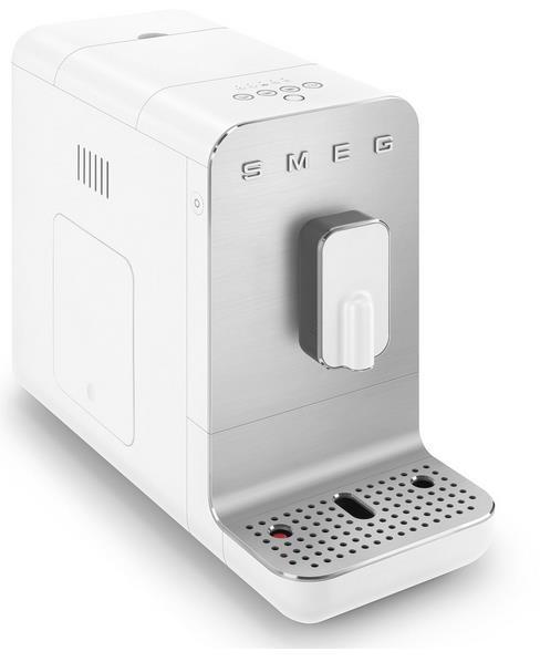 Der Kaffeevollautomat BCC01 Basic von Smeg ist der ideale Partner für Kaffeeliebhaber und auch für kleine Küchen geeignet. Der Automat im Retro-Look der 50er Jahre ist gerade einmal 18 cm breit und passt somit fast überall hin. Mit der intuitiven Benutzeroberfläche mit flachen Tasten kann der Kaffee auf Knopfdruck zubereitet werden - ob Ristretto, Espresso, Americano oder Heißwasser für Tee und andere Heißgetränke. Dabei kann der Mahlgrad sowie die gewünschte Wassermenge nach Wunsch eingestellt werden. Auch die Lieblingstasse passt dank des höhenverstellbaren Kaffeeauslaufs unter den Automaten.