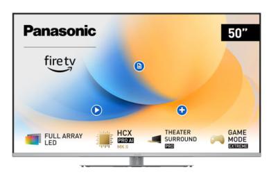Entdecken Sie unseren LED-Flaggschiff-Fernseher TV-50W93AE6 mit 50 Zoll in silber: die W93A-Serie mit 4K-Full-Array-Panel und integriertem Fire TV.